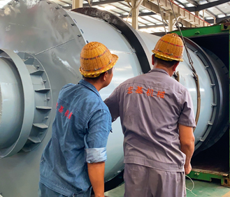 我公司生產的固、危廢回轉窯日處理工業廢棄物規格型號根據有十一個產品,筒體直徑X長度在?2.2×9m-?4.5×16m之間,轉速0.05-2r/min,配套主電機功率18.5KW-55KW,煅燒溫度850-1200度,能實現20-100t/d固、危廢無害化、減量化、資源化焚燒。